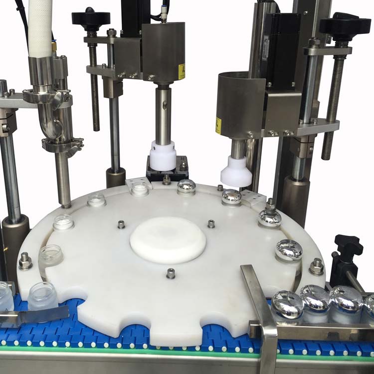 工作流程:整機(jī)的操作流程主要包含人工上面霜瓶(可選進(jìn)瓶設(shè)備)-自動(dòng)伺服灌裝-人工上內(nèi)塞(可選上塞機(jī))-人工上外蓋(可選上蓋機(jī))-自動(dòng)旋蓋-成品送出。有乳膏瓶灌裝,有蓋旋蓋,無(wú)膏體瓶不灌裝,無(wú)膏霜瓶不旋蓋。