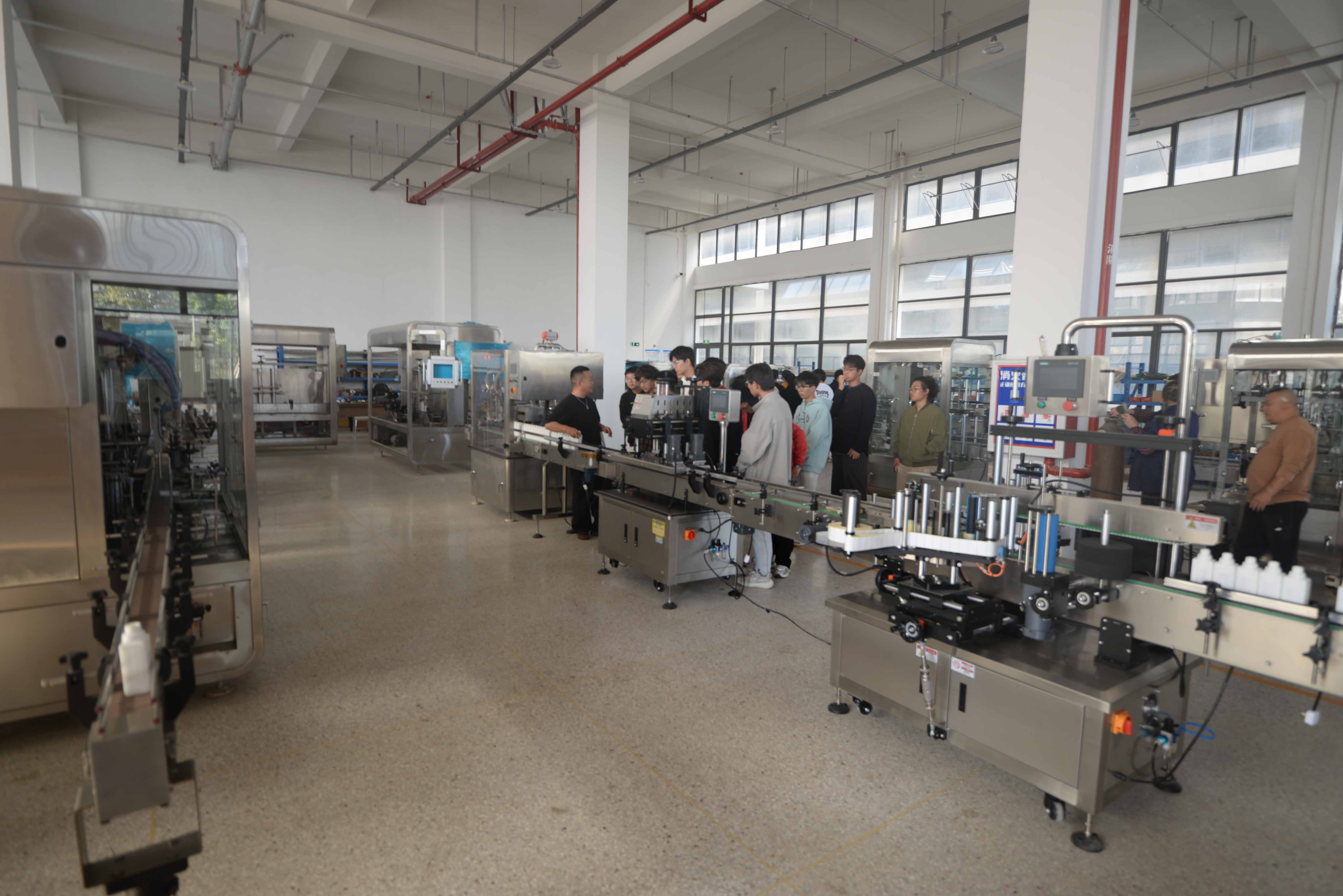 緊接著,學(xué)生們來(lái)到了香水灌裝機(jī)的生產(chǎn)車間。香水灌裝機(jī)的設(shè)計(jì)不僅要求灌裝精準(zhǔn),還需要適應(yīng)多種瓶型,并確保液體不浪費(fèi)?,F(xiàn)場(chǎng)的香水灌裝機(jī)在工人熟練的操作下,瓶口與灌裝嘴無(wú)縫對(duì)接,香水在高速運(yùn)轉(zhuǎn)中被均勻灌注。這種設(shè)備兼具美觀和實(shí)用性,尤其適合年輕人關(guān)注的時(shí)尚產(chǎn)業(yè),讓同學(xué)們深刻認(rèn)識(shí)到機(jī)械制造與時(shí)尚消費(fèi)品的密切關(guān)系。