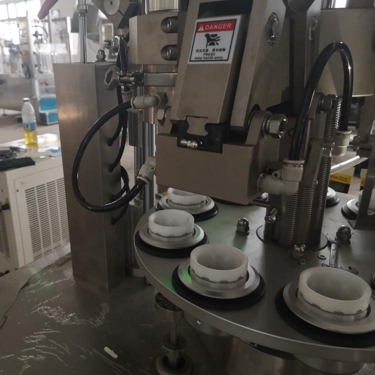 該灌裝封尾機采用(西門子、臺達)觸摸屏和PLC控制,自動上管、自動定位以及進口快速的加熱器和高穩(wěn)定流量計形成的熱風加熱系統(tǒng),具有封口牢固可靠,包裝速度快,不損傷封合部外表,封尾外形美觀,整齊。該機可選配各種不同規(guī)格的灌裝頭及杯座,滿足不同粘度的灌裝量要求,并配有有機玻璃防塵罩。